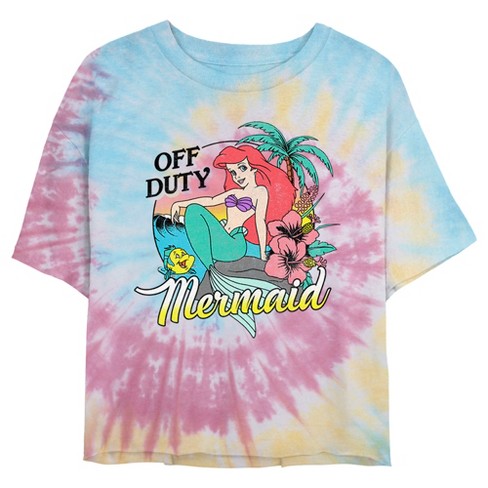 Juniors Womens The Little Mermaid Off Duty Ariel Crop T Shirt Tie Dye X Large