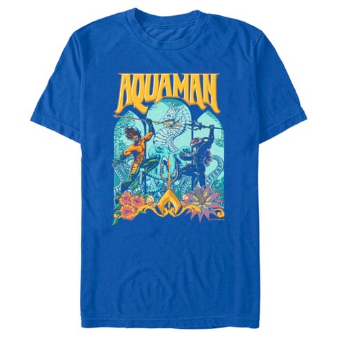 Men s Aquaman and the Lost Kingdom Retro Window Poster T Shirt Royal Blue Small