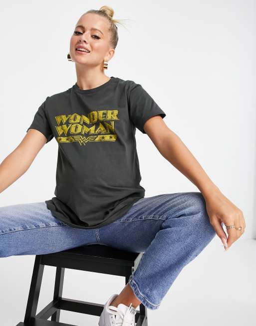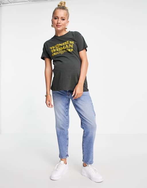 ASOS DESIGN Maternity wonder woman t shirt in charcoal