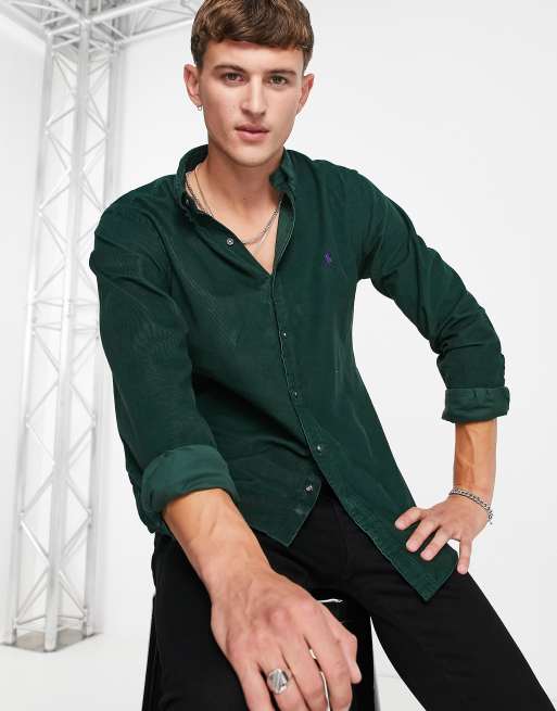 Ralph lauren green clearance corduroy shirt, Polo Ralph Lauren icon logo slim fit fine cord shirt buttondown in green clearance