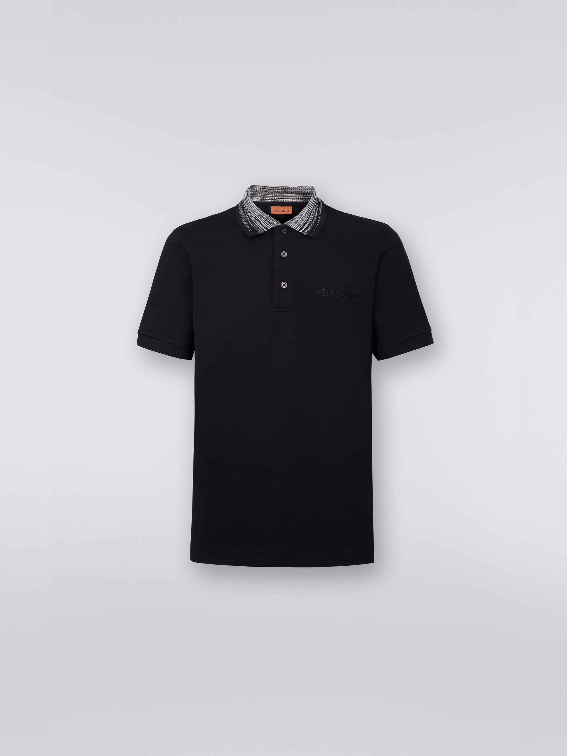 Cotton polo shirt with slub collar and logo lettering Black Missoni