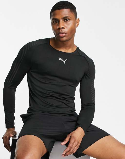 Puma Evostripe seamless long sleeve crop top in soft gray ASOS
