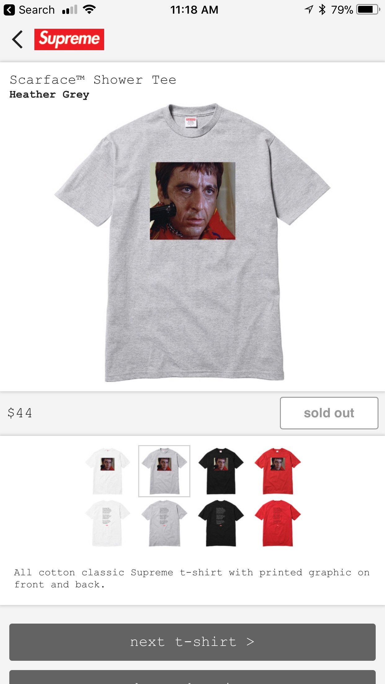 Supreme Scarface Shower Tee Black Size Small FW17 T Shirt