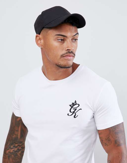 GYM KING Longline Fitted Tee Shirt GK Mens T Shirt Crew Neck Summer Cotton Top