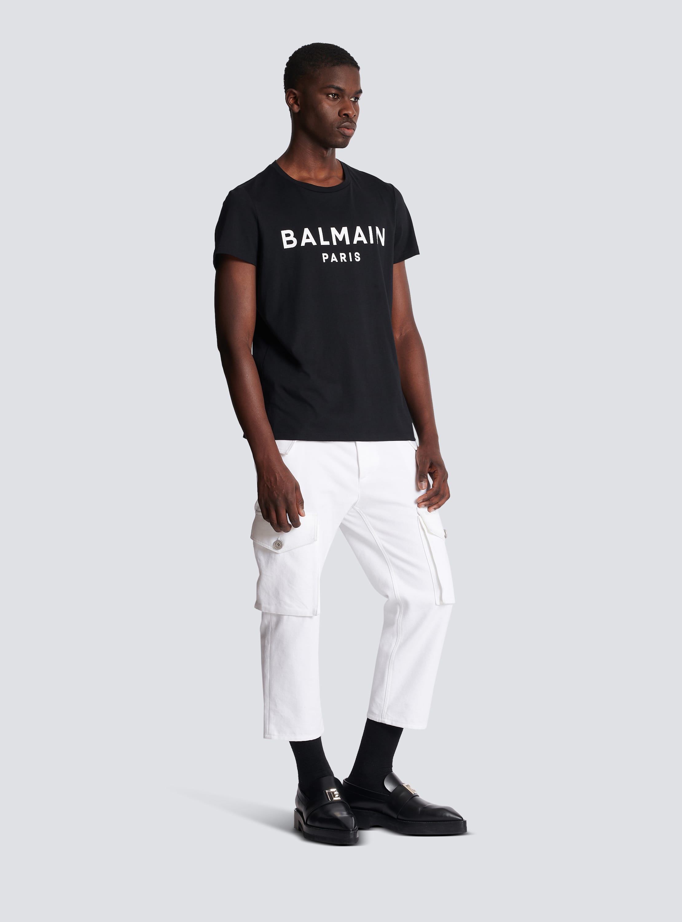 Black balmain t clearance shirt, Men s luxury T shirt White Balmain black logo T shirt clearance
