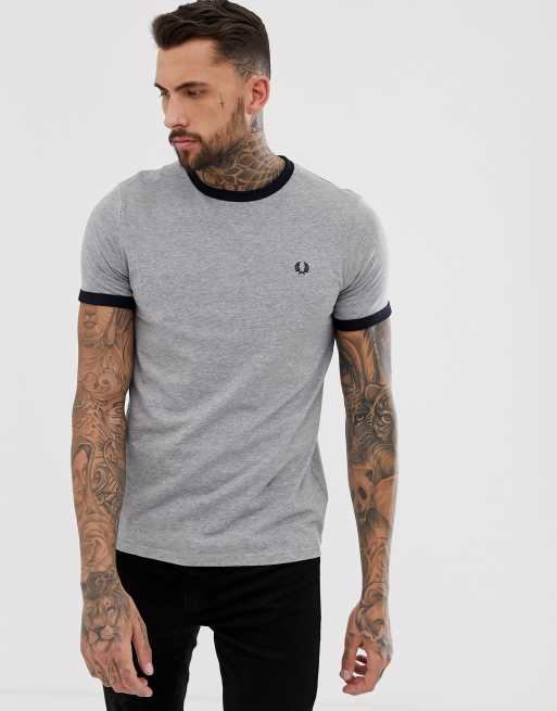 Fred Perry twin tipped ringer t shirt in gray ASOS