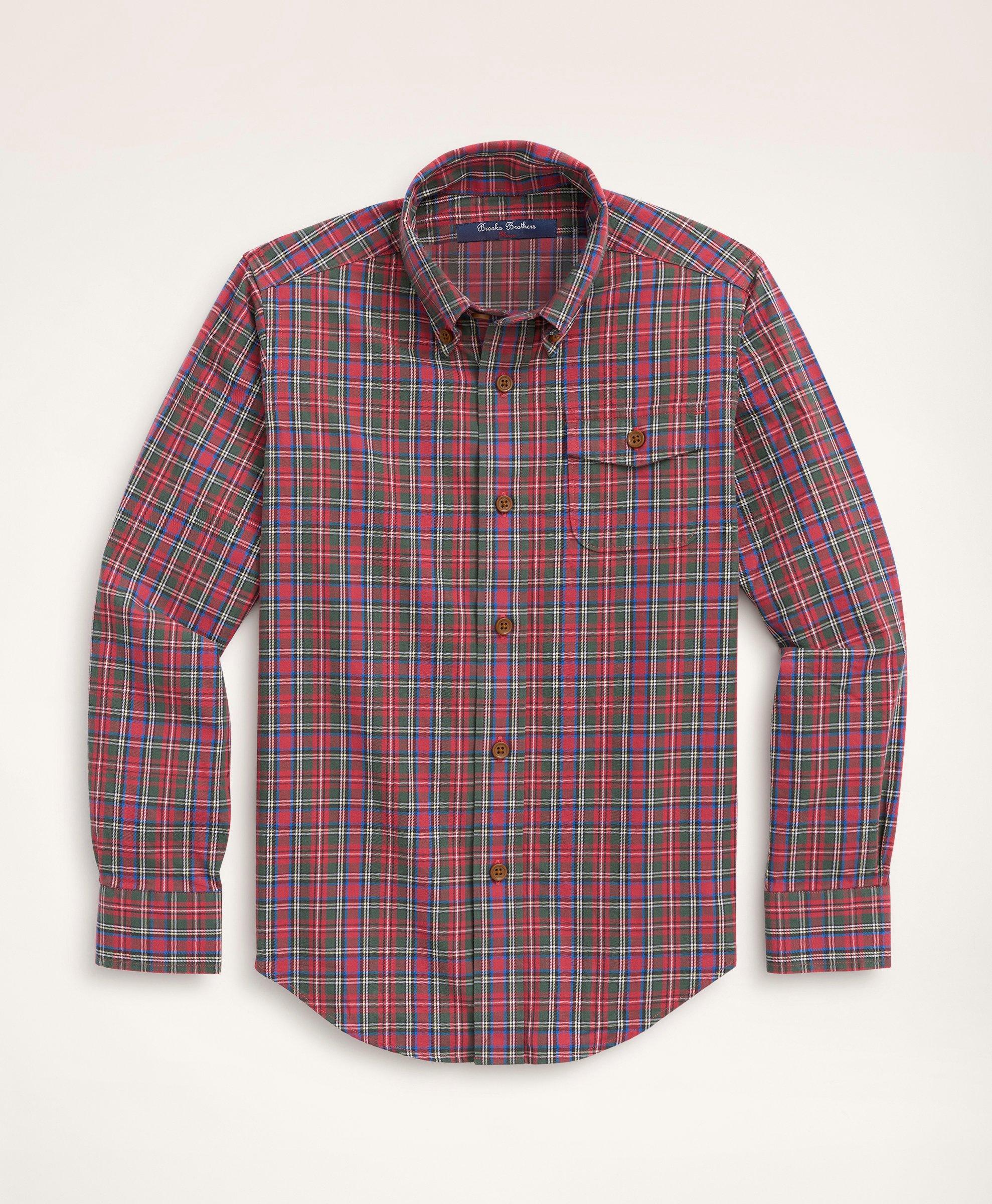 Boys Brushed Twill Red Tartan Sport Shirt