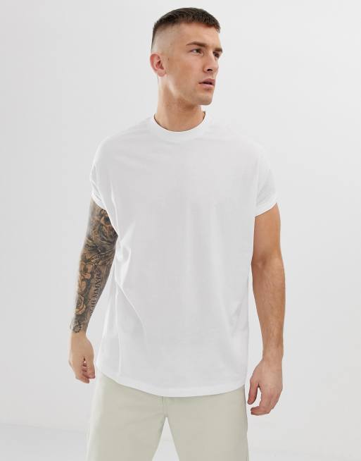 ASOS DESIGN oversized longline t shirt with crew neck and roll sleeve in white