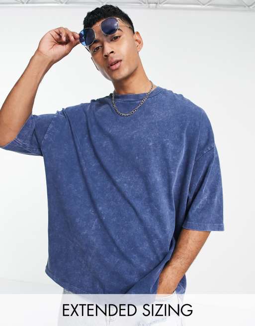 ASOS DESIGN oversized heavyweight t shirt in acid washed navy blue