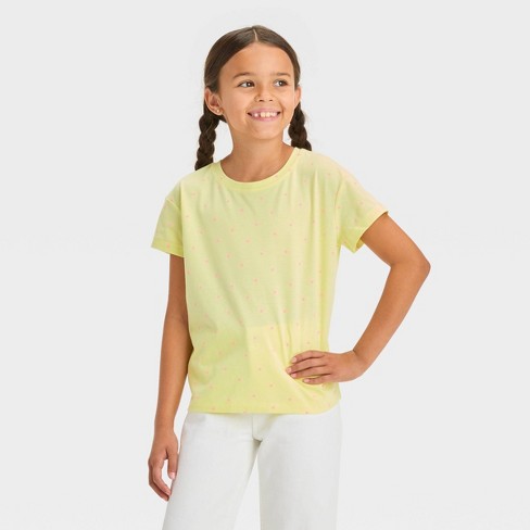 Girls Short Sleeve Dotted T Shirt Cat Jack Light Yellow XXL