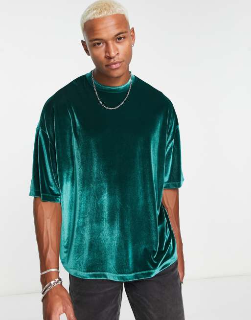 ASOS DESIGN oversized t shirt in green velour with back embroidery