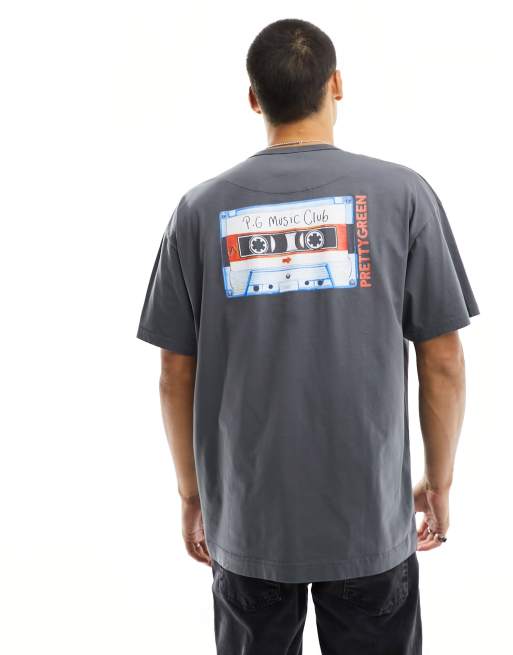 Pretty Green Cassette back print relaxed fit T shirt in dark gray