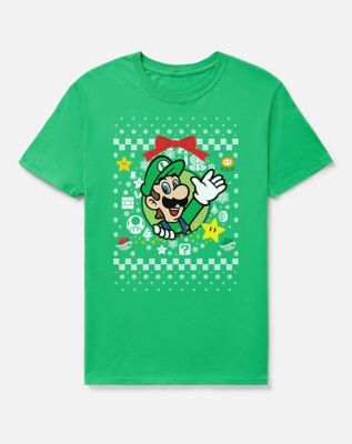 Super Mario Lucky Luigi T Shirt GREEN Hot Topic