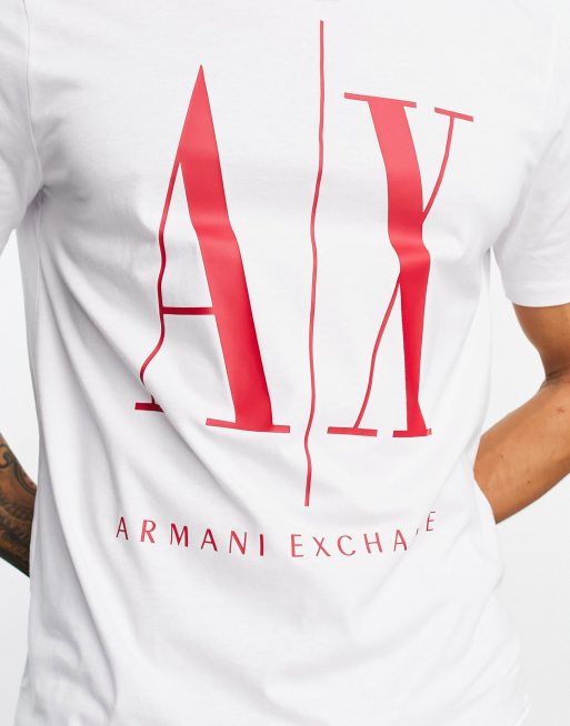 Armani Exchange Icon Logo Graphic Tee In White Lipstick Red