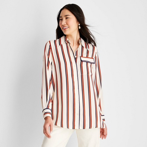 Women s Striped Satin Button Down Shirt Future Collective with Reese Blutstein White 1X