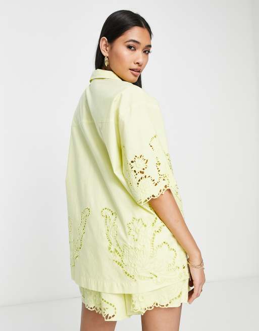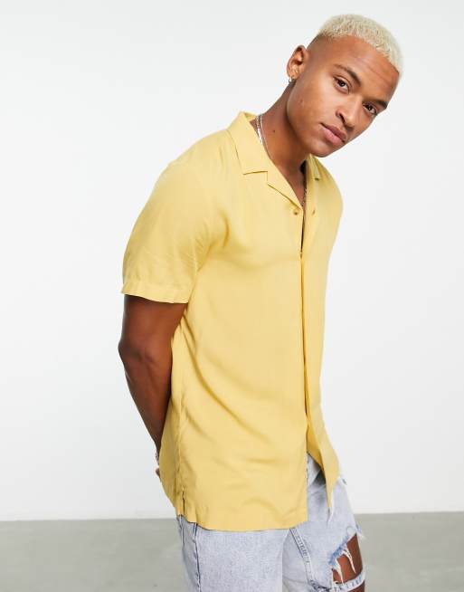 ASOS EDITION embroidered boxy short sleeve shirt in yellow ASOS