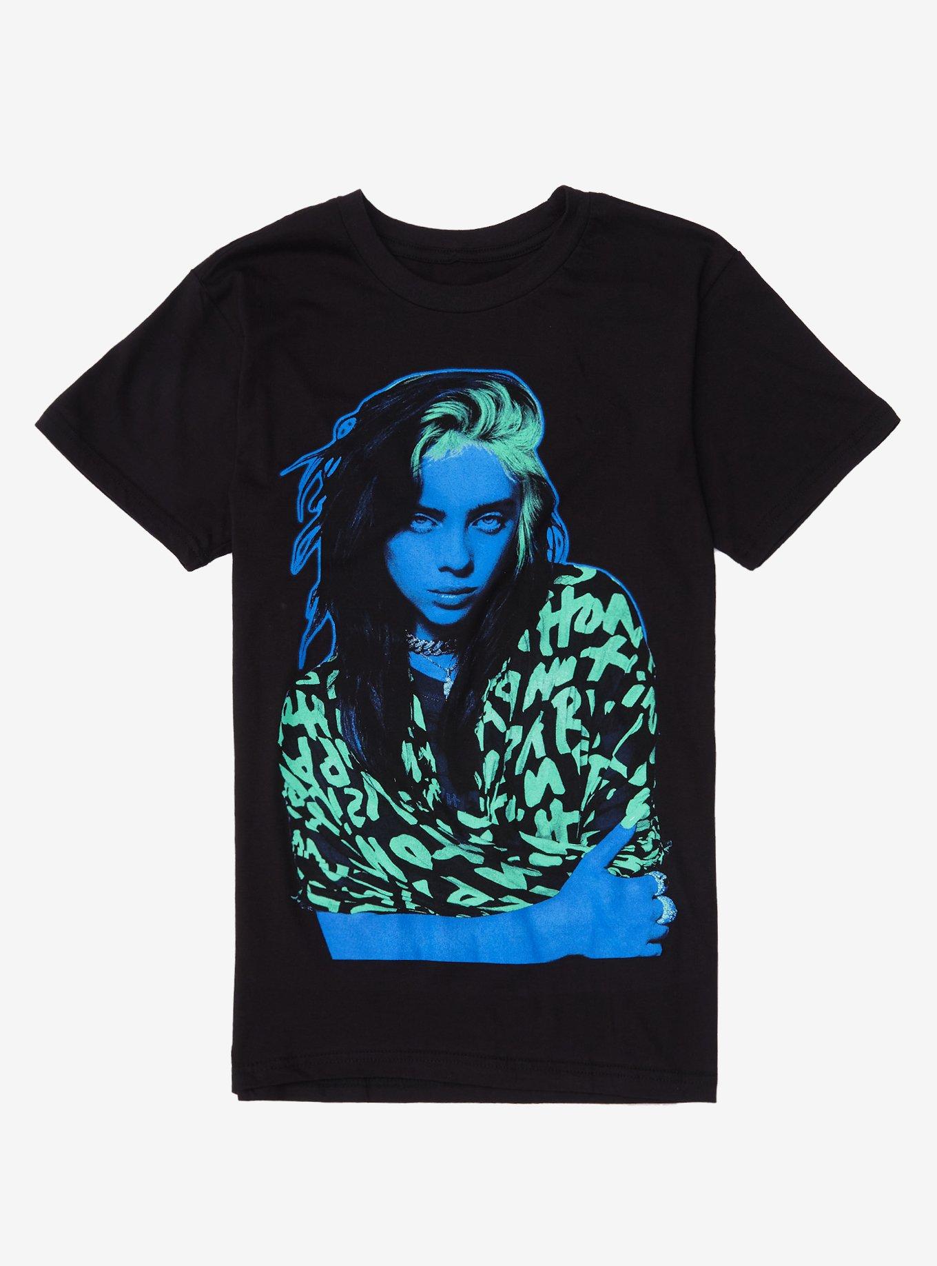 Billie Eilish Blue Green Neon Portrait Blue T Shirt Size Small