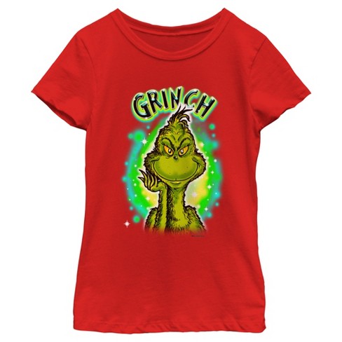 Girl s Dr. Seuss Airbrush Grinch T Shirt Red Medium