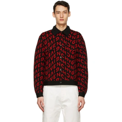 Givenchy Black Red Wool Refracted Logo Bomber Jacket ModeSens