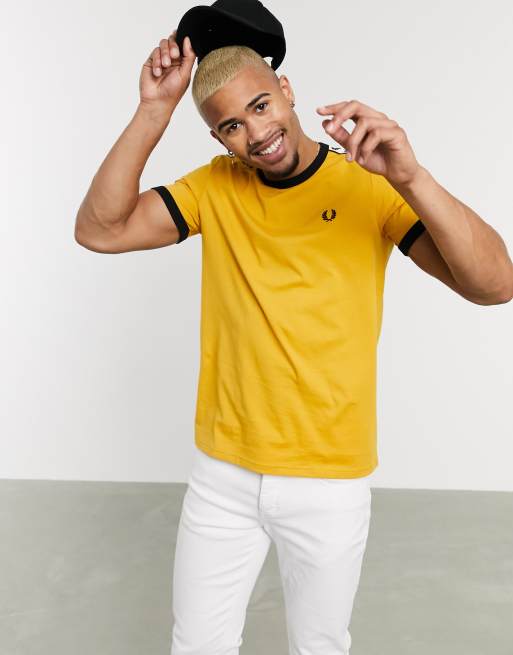 Fred perry taped ringer t clearance shirt yellow, Jual Fred Perry Taped Ringer T Shirt M6347 G03 Original S clearance