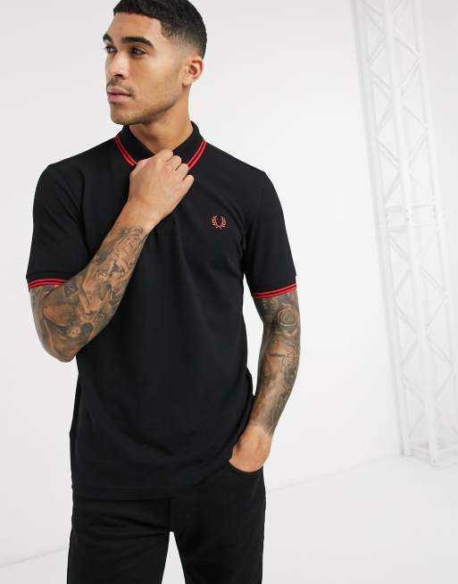Fred Perry twin tipped logo polo in black red ASOS