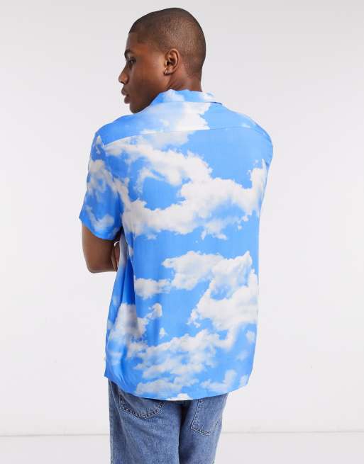 ASOS DESIGN regular camp collar shirt in sky cloud placement print