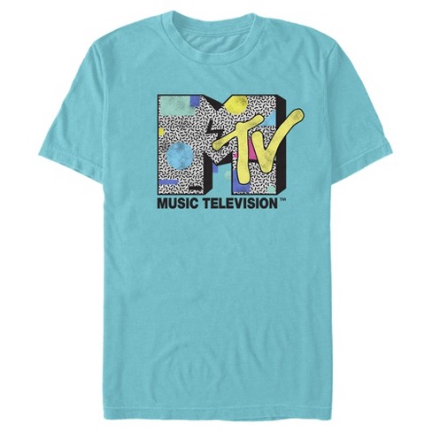 Men s MTV Eighties Style Print Logo T Shirt Tahiti Blue X Large