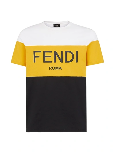 Fendi Mens White Yellow Black Logo print Cotton jersey T shirt M