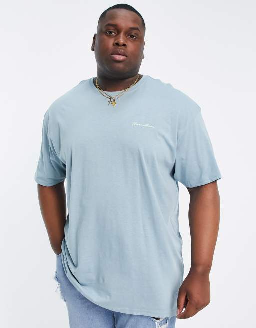 Threadbare Plus oversized logo back print T shirt in duck egg blue
