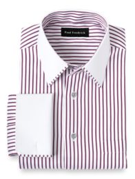 Non iron Cotton Stripe Dress Shirt With Contrast Trim