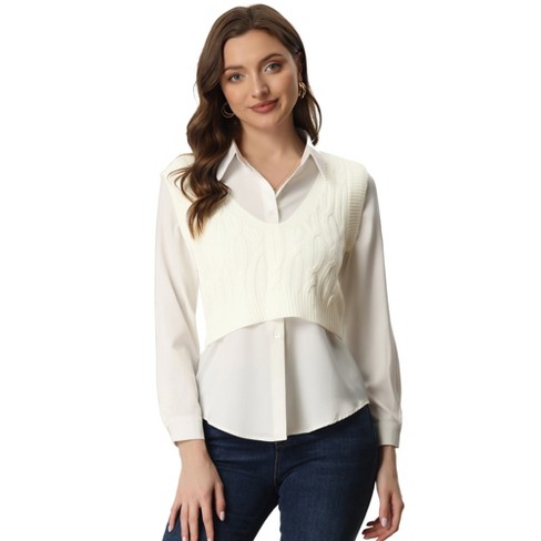 Allegra K Women s Cable Knit Crop Sweater Vest Deep V neck