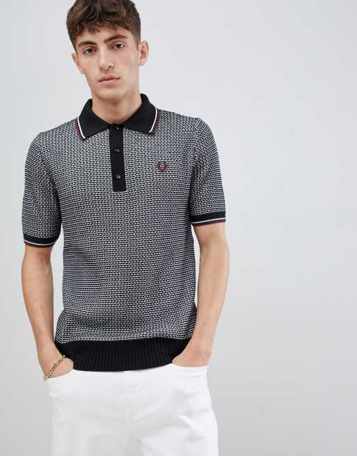 Fred Perry Reissues Woven Textured Knitted Polo In Black white for