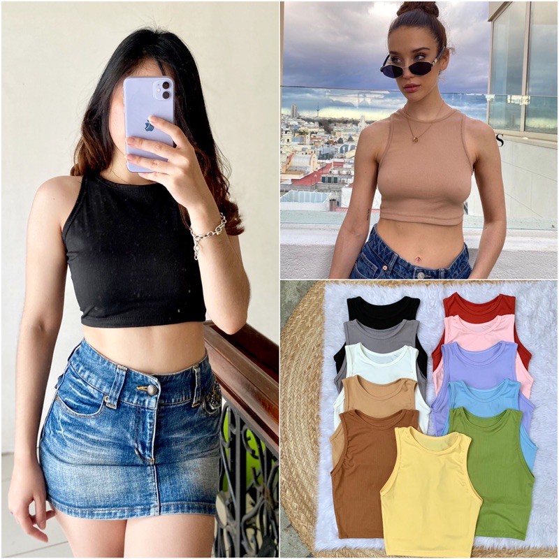 Plain Knitted Halter crop top with Lining Korean Fashion Knitted