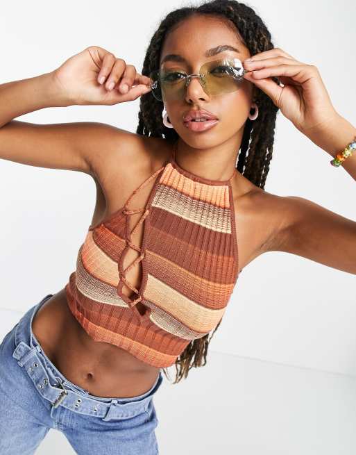 Brown Crop Top Back Lace Up Knit Crop Top Rust Crop Top