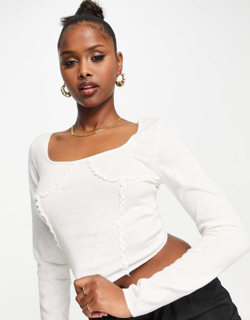 ASOS Design knitted top with frill seam corset detail in cream ASOS