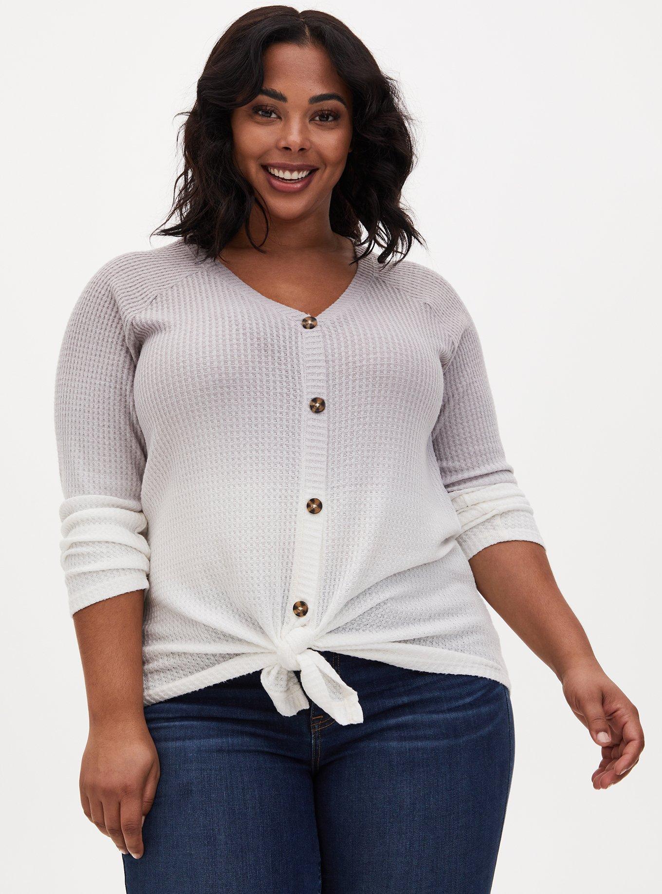 Waffle v neck clearance long sleeve, Plus Size Waffle V Neck Button Front Long Sleeve Top Torrid clearance