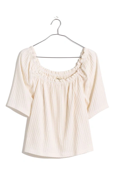 Madewell Pointelle Knit Peasant Top In Pearl Ivory ModeSens