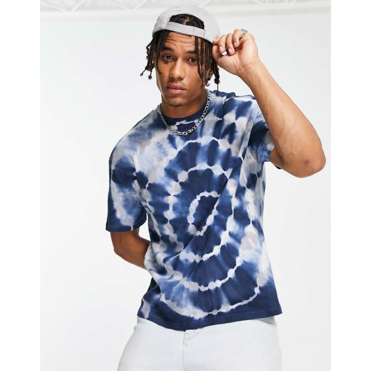 ASOS DESIGN relaxed tie dye t shirt in blue and gray