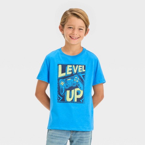 Boys Short Sleeve Gaming Level Up Graphic T Shirt Cat Jack Blue XS
