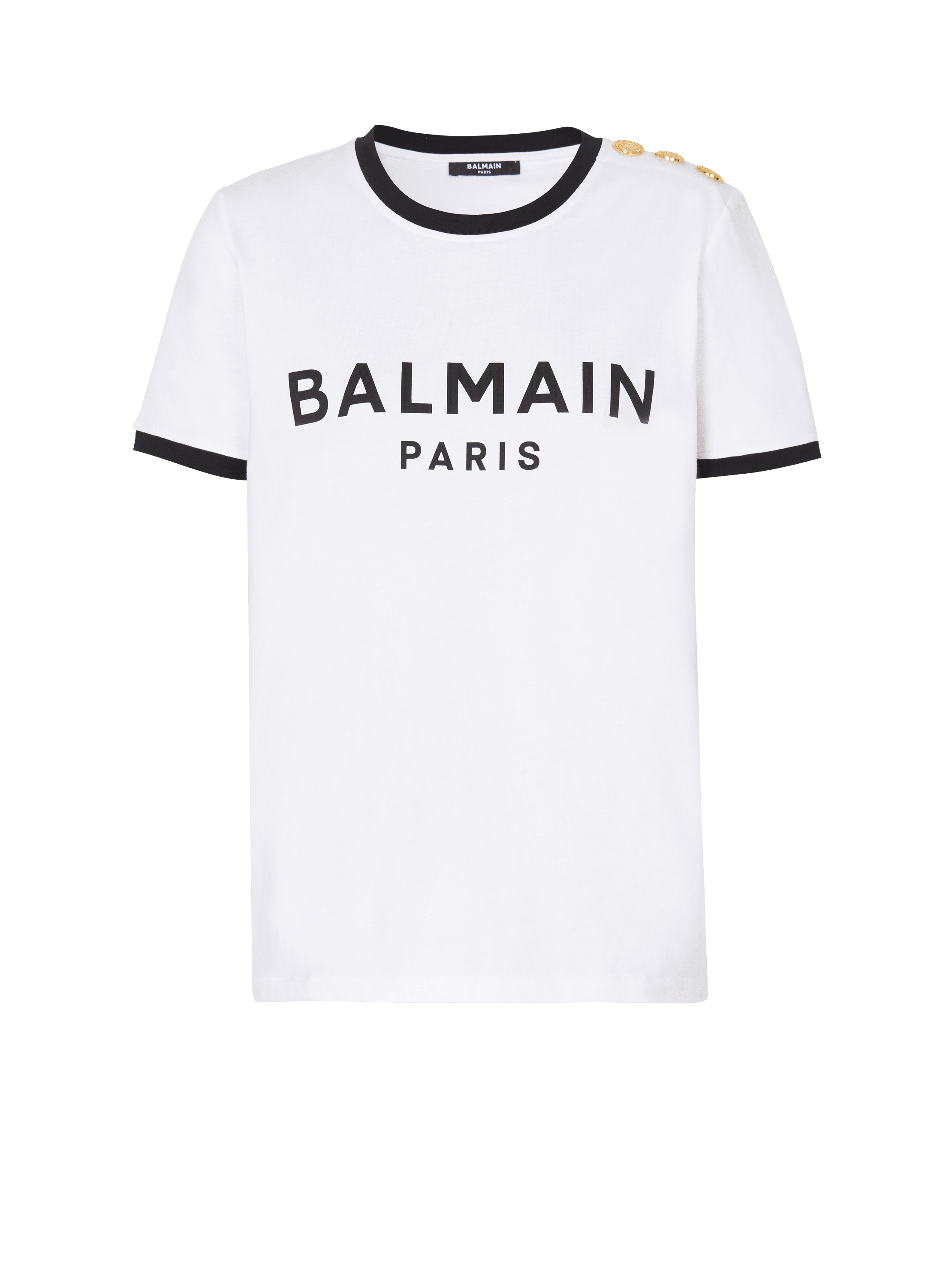 Eco responsible cropped cotton T shirt with Balmain logo print