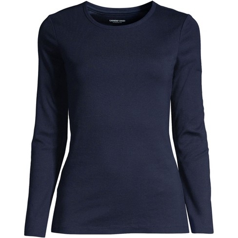 Women's long sleeve clearance t shirts cotton, Lands End Women s Tall Long Sleeve Crew Neck T Shirt Small Tall Radiant Navy clearance