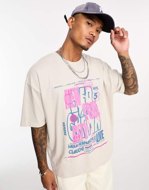 ASOS DESIGN oversized T shirt in beige with NYC front print ASOS