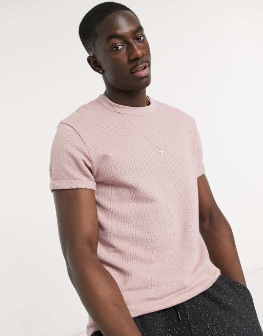 ASOS DESIGN T shirt with cuffed sleeves in purple heavyweight texture