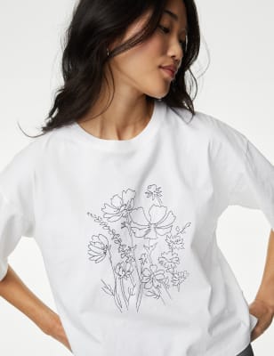 New Marks and Spencer Womens T Shirt Tee shirt Embroidered T shirt Per Una RRP19