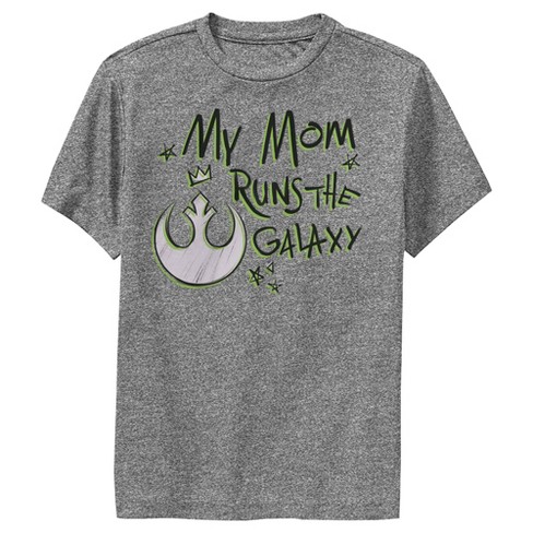 Boy s Star Wars Mother s Day Mom Runs Galaxy Performance Tee Charcoal Heather Medium