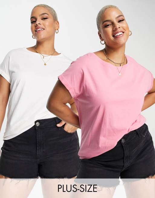 Simply be 2 pack boyfriend t shirts in pink and white ASOS