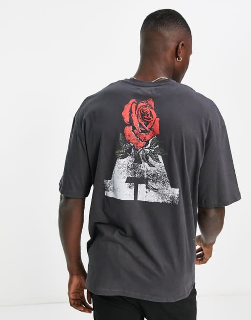 Rose print t clearance shirt, Black Rose Print T Shirt clearance