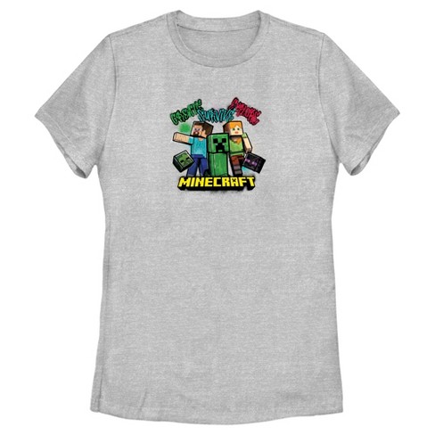 Women s Minecraft Create Survive Explore Alex and Steve T Shirt Athletic Heather 2X Large
