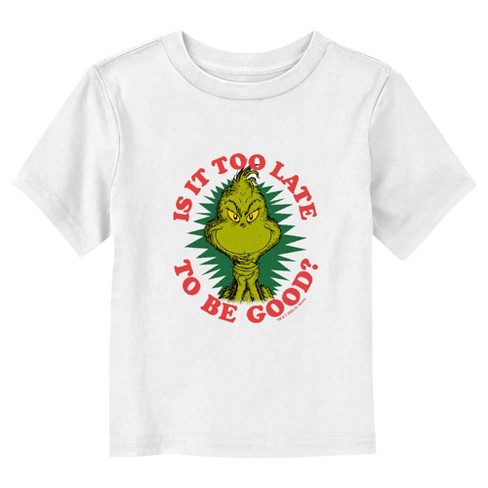 Toddler s Dr. Seuss The Grinch Is It Too Late T Shirt White 5T