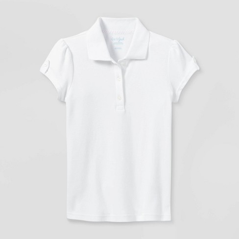 Girls Short Sleeve Interlock Uniform Polo Shirt Cat Jack White L Plus